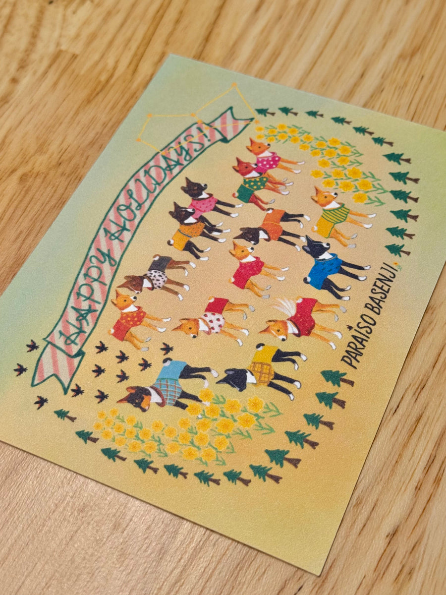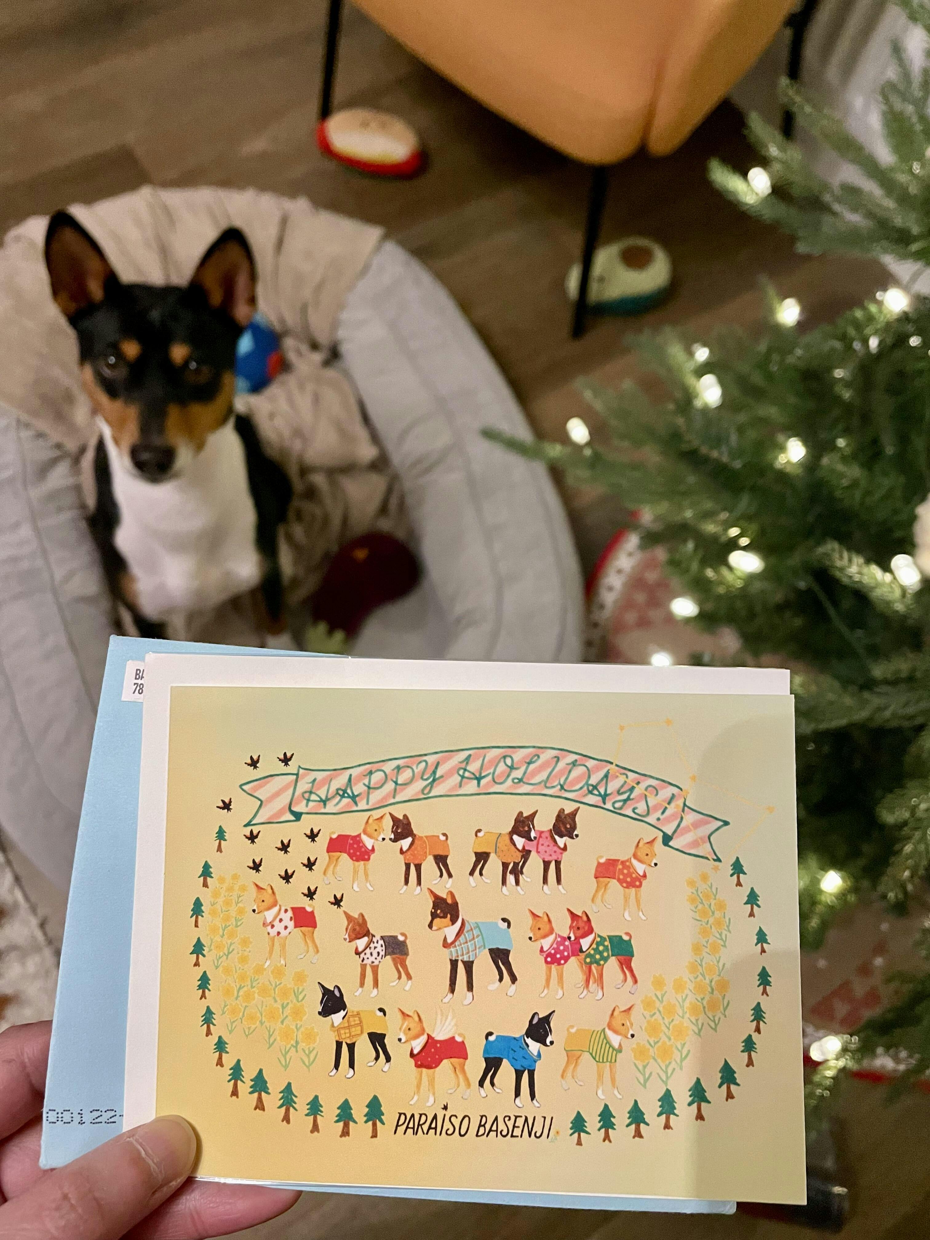 Also specifically with the postcard - it’smade of great quality thick material- I ended up framing it!!!! The design is really adorable and you can see the distinctive markings in each basenji. And mostly I teared up a little bit when I saw the wings on Shiro.