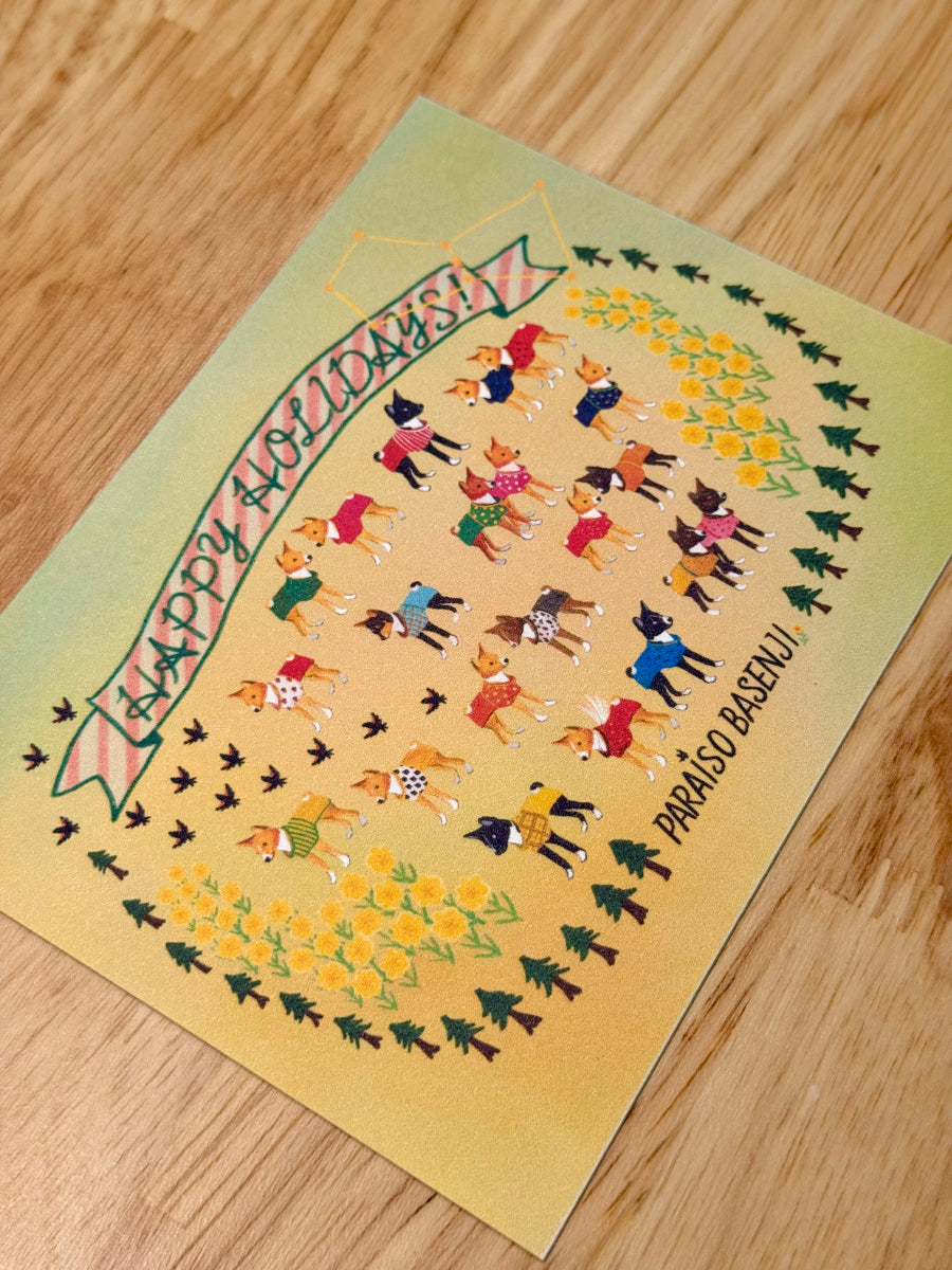 Hiro is a joy to work with. For those of us that have basenjis he truly has created a community for us. He makes us feel like we’ve known each other for so long by sharing stories of Shiro and Kuro. As a business he has truly gone above and beyond every time -always communicating but also treating us with the utmost respect. And most importantly the individualization of his work - Loafy has a spot on the postcard and we framed it. how special is that to find out your basenji is there? Thank you Hiro truly !!!