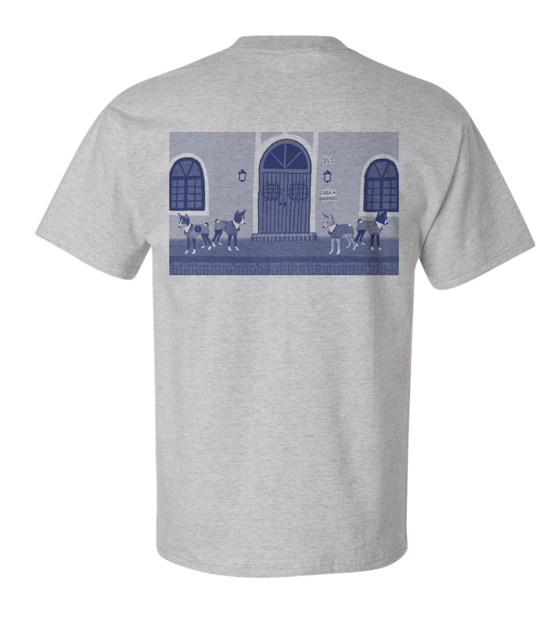 Back: Halftone hand screen-printed art of Casa de Basenjis